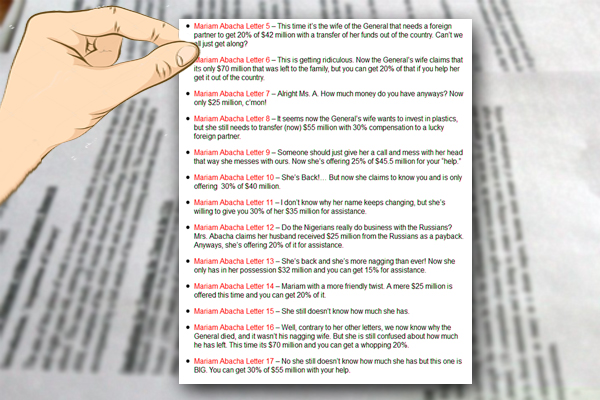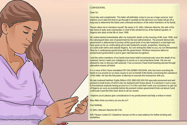 The scam unfolds with a letter outlining the writer's need to access a foreign bank account for money transfer, often mentioning sums exceeding US$10 million. The only