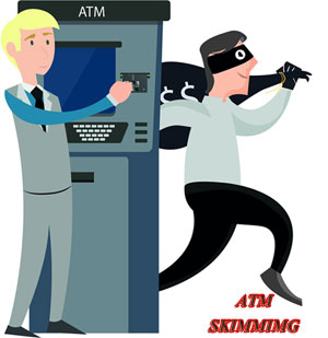 A type of fraud which occurs when an ATM is compromised by a skimming device, a card reader which can be unrecognizable to look like a part of the machine. The card reader saves the users' card number and pin code, which is then replicated into a counterfeit copy for theft.