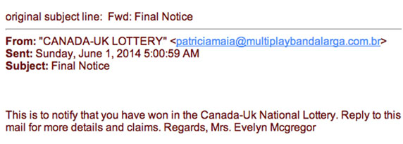 The below mentioned screenshot is a sample of how a foreign lottery scam email would look like.