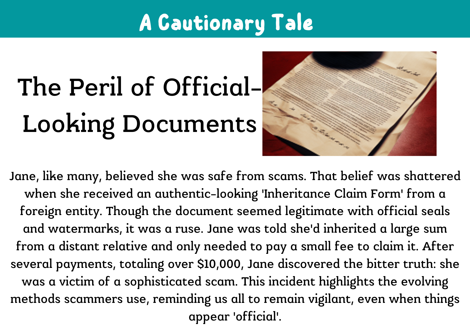 The Fraudulent Official Document Scam is a deceptive tactic where scammers use documents that bear a striking resemblance to genuine official forms, letters, or notices. These documents are crafted meticulously, with official-sounding language, logos, and seals, making them seem legitimate at first glance.