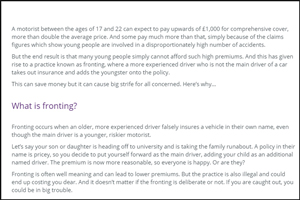 Fronting refers to deceptive practices in car insurance policies. Typically, insurance premiums vary based on the primary driver's experience and driving record compared to any additional named drivers. When taking out a policy, it's crucial for car owners to accurately declare the main and any additional drivers. The expectation is that the main driver will predominantly use the car for the policy's duration, while additional drivers will use it occasionally or under specific circumstances. However, some car owners, aiming to reduce their premiums, may falsely declare a more experienced driver as the main driver while they, as the actual main driver, are listed as an additional driver. This misrepresentation, aiming to secure a lower premium rate, is what the insurance industry calls "fronting." It's a risky approach that can lead to policy invalidation or denied claims.