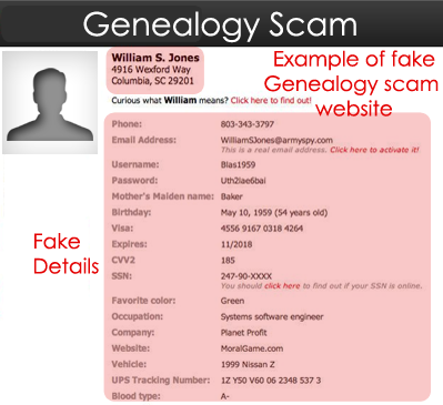 Deceptive genealogy scammers often launch fraudulent websites aimed at extracting your personal and financial information. These con artists specifically target individuals passionate about tracing their lineage and lure them into registering on their spurious platforms. Registrants typically find themselves paying exorbitant fees for fabricated genealogical reports that, more often than not, lack any factual basis. Beyond monetary loss, these sites serve as data mines, gathering personal details which can then be used for identity theft. If you resist registering, these scammers might attempt a different tactic: reaching out via personal emails. They might spin tales about an ancestral inheritance or claim you're entitled to the estate of a distant relative from overseas. Usually, such conversations are anchored on the premise of you parting with money, either for registration fees or to process an inheritance that, unsurprisingly, never materializes.