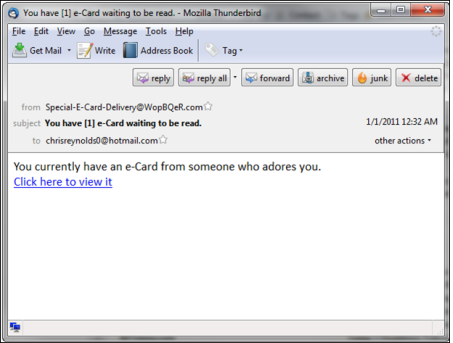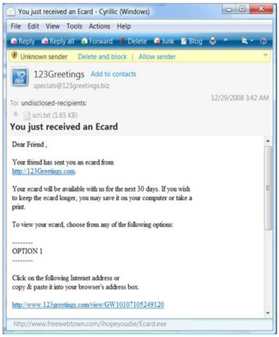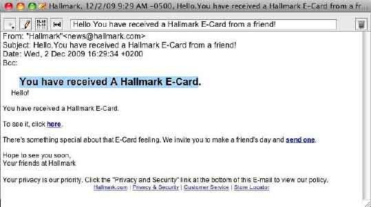 Scammers invest significant efforts to ensure that their greeting card emails appear genuine and from a familiar entity. Their primary goal is to entice the recipient to click on the provided link.