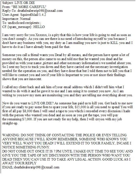 Termed as the 'Hitman scam', this sinister tactic was initially unleashed by scammers around 2007. The modus operandi involves sending a chilling email to the target, with the scammer posing as a hitman allegedly hired by someone close to the victim – it could be a family member, friend, or acquaintance. The message comes with an ultimatum: the victim's life will be spared only if they transfer a specified amount to the so-called hitman. This psychological game, built on leveraging deep-rooted fears, is designed to push the recipient into a corner, making them act irrationally by paying up. Sadly, there have been instances where individuals, overwhelmed by fear, have fallen for this deceptive scheme.