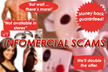 Slow down your spellbinders and lower the chances of being scammed by being aware of the red flags. Up selling, only electronic funds transfer, one product does it all, scientific breakthrough are some of the alerts! If you've been scammed by an infomercial, write a complaint to informercialscams.org and BBB, also report to the local authorities.