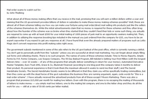 The innocent customers will pay the amount and wait for the products that are ordered from several days. To their dismay the product will never reach their residence and theywill be left to lurch. These types of scamming are becoming extremely famous these days and hundreds of professional scammers take part actively in these types of scamming activities. Though cyber security board is taking lots of preventive measures and actions against the perpetrators they are unable to put a full stop to these types of illegal activities. Some of the popular Mail Order Scams are donation request scams, merchant rewards scams, gold winning international scam, phone hacking scams and catalog scams. The list of mail scams is endless and few pages are not enough to describe fully about these types of scams that are gaining popularity.