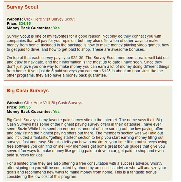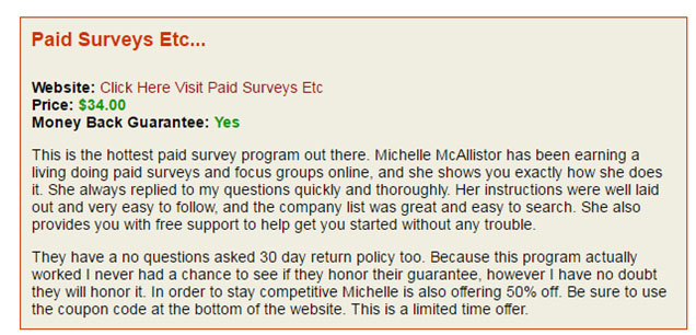 The below mentioned screenshots are examples from three different online paid survey companies that advertise and target users by sending emails along with fake testimonials that lure the user to take up online surveys. They charge a very small amount from the user, like $35, $39, $34 etc. these are commonly used prices by online paid survey companies. The ultimate aim of these online paid survey companies is to reach out to many users who would pay this small amount that becomes huge for the scammer. In the end, the users who have registered for these online paid survey jobs do not receive any money for the work done, nor do they receive the initial fee back which they paid as a part of registration.