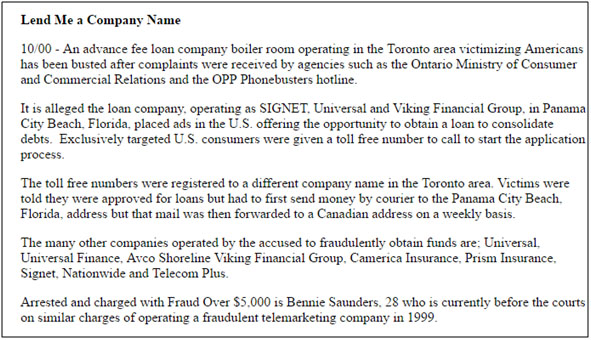 Real-Life Examples of Advance Fee Loan/Credit Payment Scams: