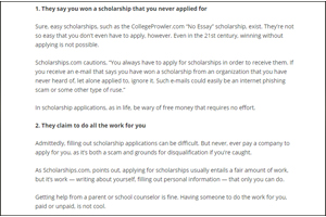 Warning Signs: Scholarships that guarantee large sums of money or claim you've won without applying.