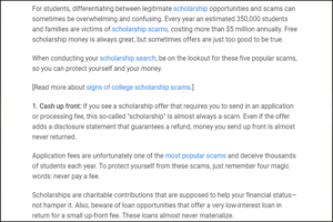 scholarship search. Remain vigilant to safeguard yourself from falling prey to deceptive practices.