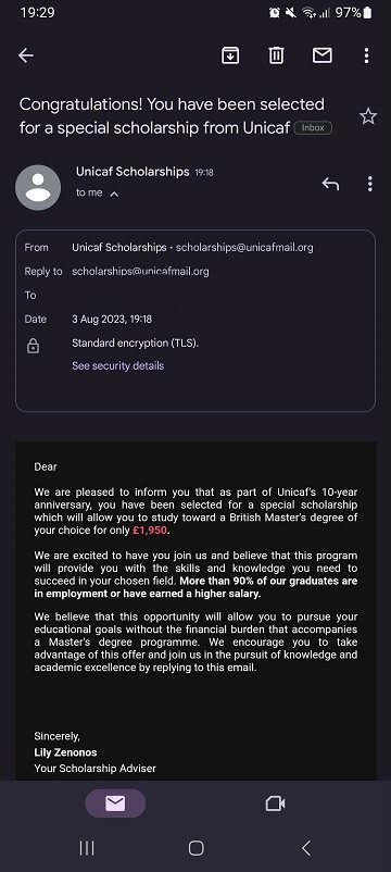 Warning Signs: Unexpected emails, calls, or messages claiming you've won a scholarship.