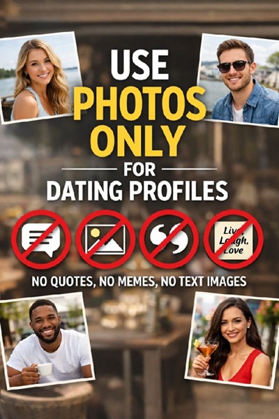 It’s a good idea to upload photos that are used exclusively for your dating profile. Avoid reusing pictures from your social media accounts such as Facebook, Instagram, LinkedIn, or X. Scammers often perform reverse image searches to find additional information about you, so keeping your dating photos separate adds an extra layer of privacy.
